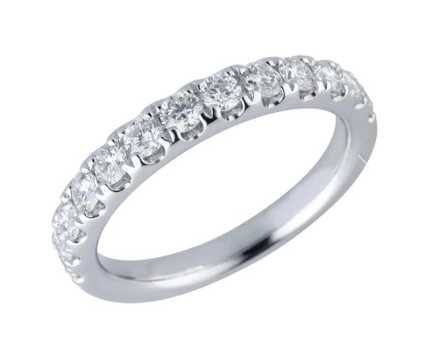 Celebrate your forever with this exquisite anniversary band. Shimmering with .79ctw of round brilliant cut diamonds, each stone is carefully secured with elegant fishtail prongs.
